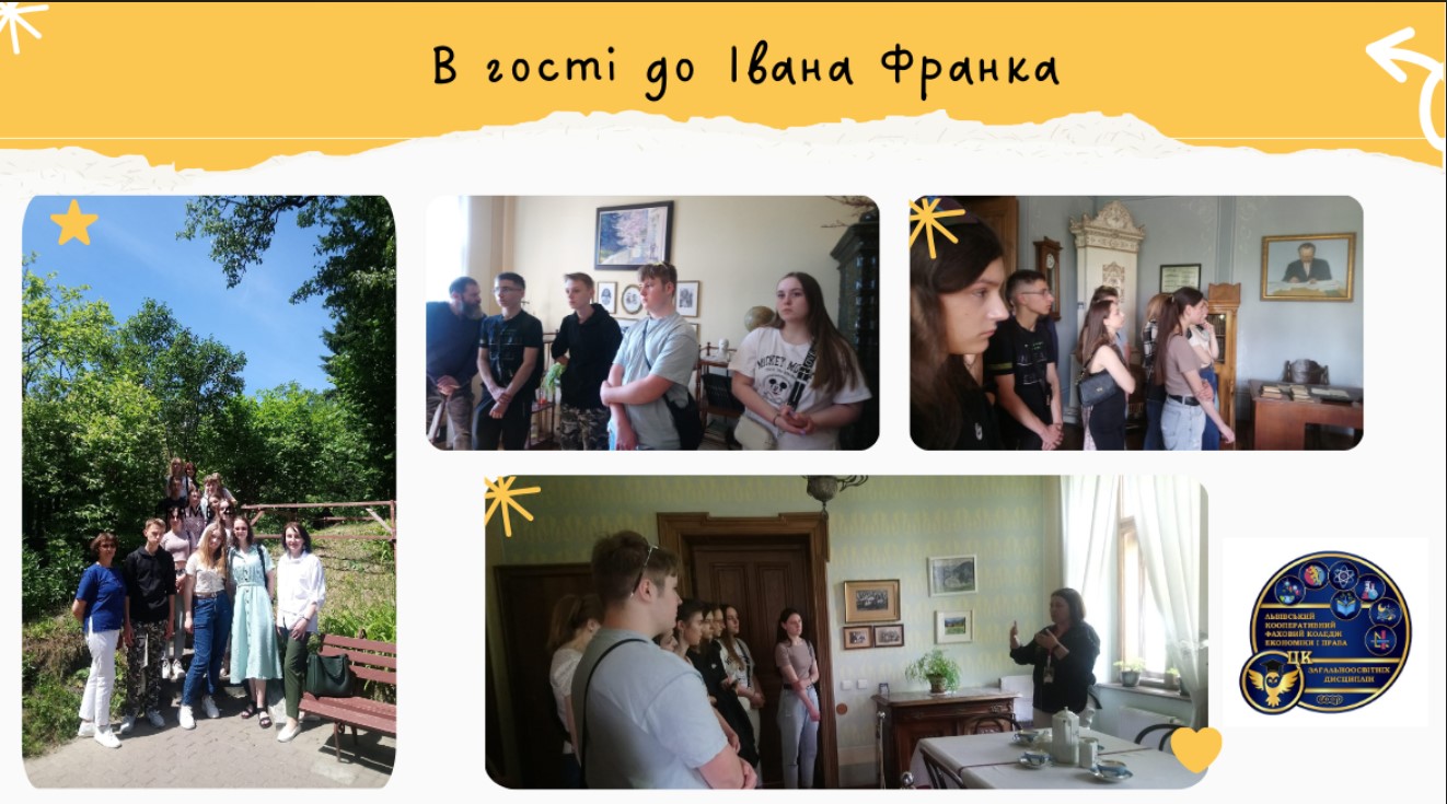 27 травня 2024року студентів (гр. ФН-ГРС-13 і ПВн-23) та викладачів Коляно М. М. і Козак З. Й. Львівського кооперативного фахового коледжу економіки і права гостинно приймав "Дім Франка".