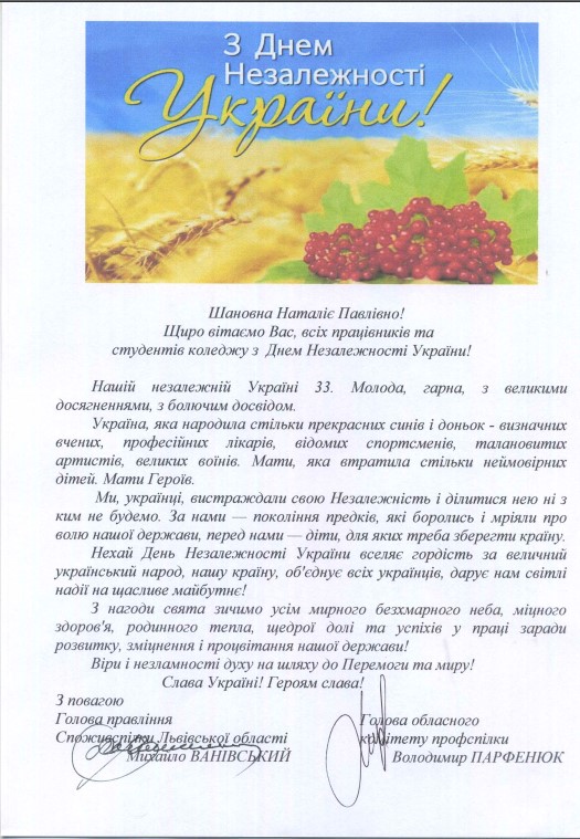 Вітання з Днем Незалежності України!