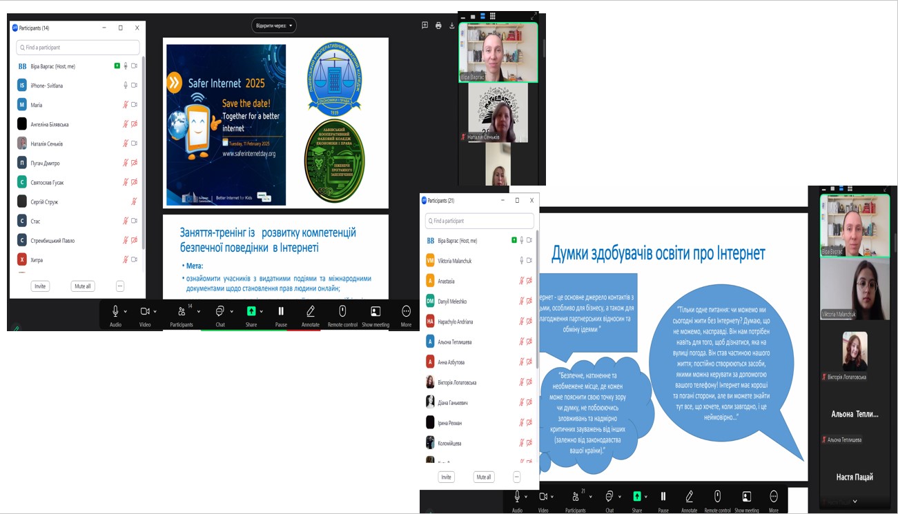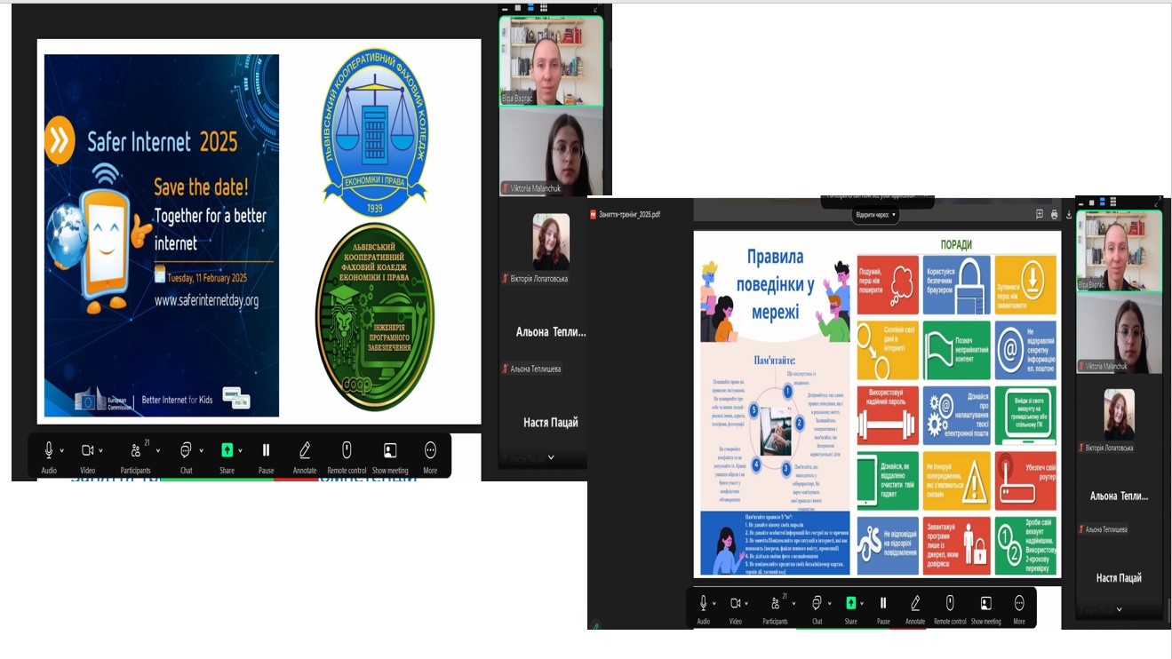 11 лютого 2025 року світ відзначає Safer Internet Day під гаслом "Разом до найкращого Інтернету". У дистанційному форматі були проведені тренінги для здобувачів освітньо-професійних програм: «Право» та «Інженерія програмного забезпечення».