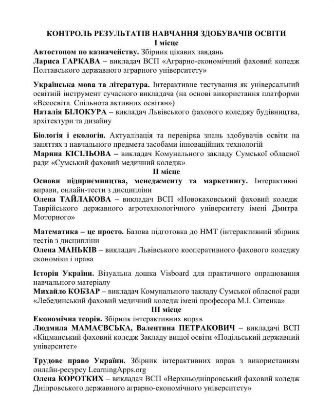 посіла почесне місце у номінації "Математика - не проста. Власні відповіді до НМТ (інтерактивний збірник тестів з дисциплін)".